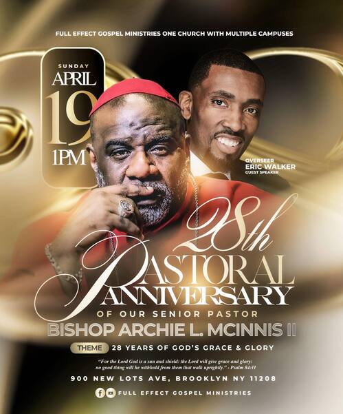 3rd Sunday - Pastoral Day honoring Bishop Archie L. McInnis, II, Senior Pastor & Founder